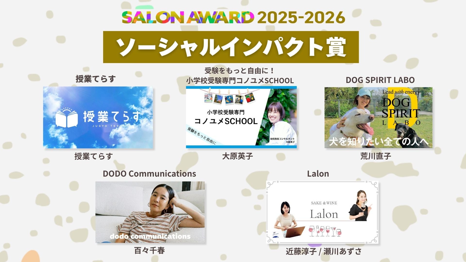ソーシャルインパクト賞:活動を通じて、顕著な社会的価値を生み出したサロンに贈られる賞