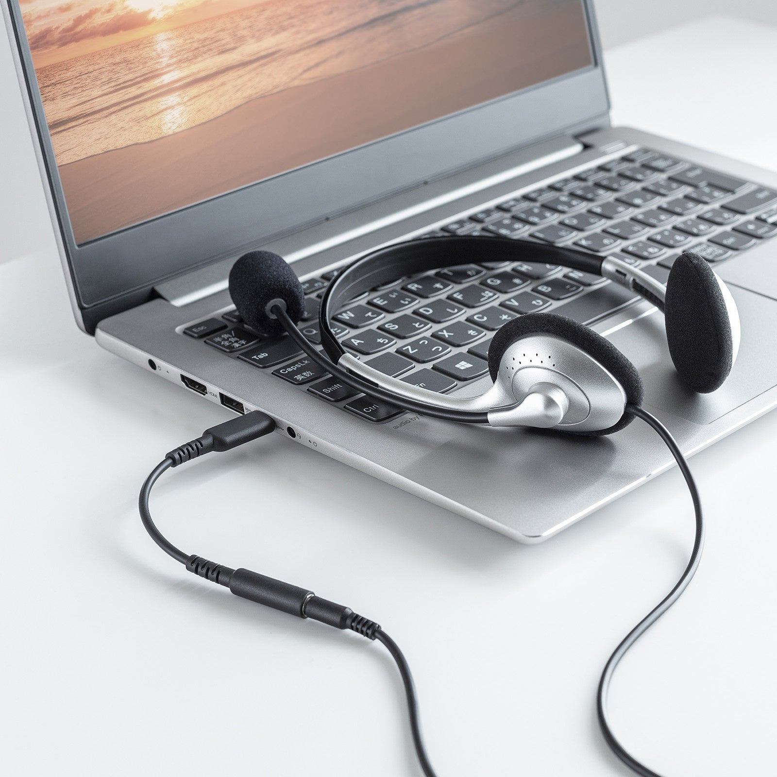 USB Type-Cポートに3.5mmステレオミニプラグのイヤホンやヘッドセットを接続するためのアダプタです。スマートフォンやタブレット、ノートパソコンなど、USB Type-Cポートを搭載するデバイスに幅広く対応します。