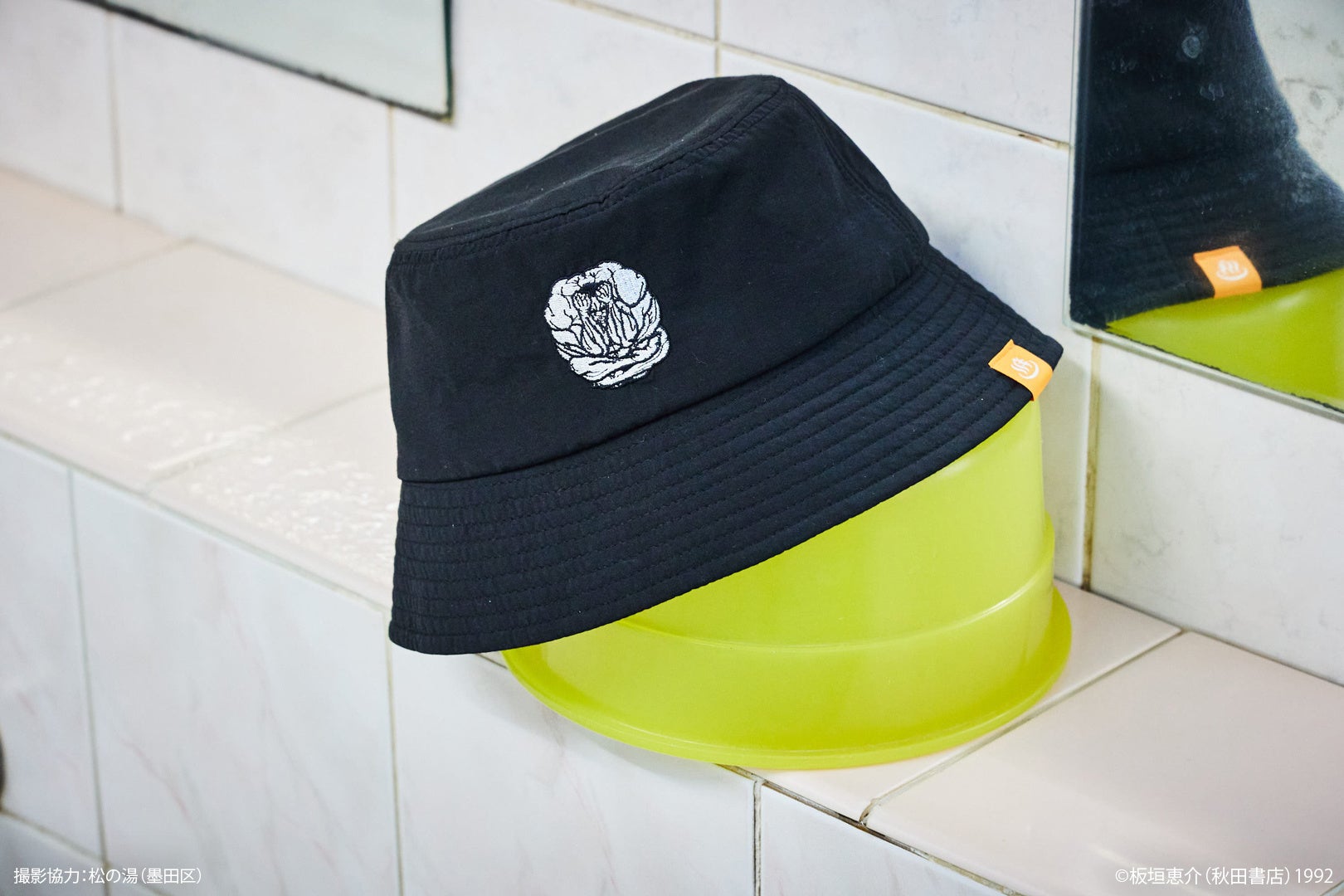 球体となったビスケット・オリバの刺繍を施した「アンチェイン・サウナハット」。