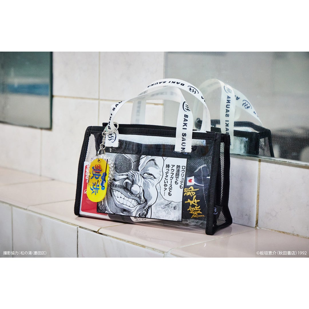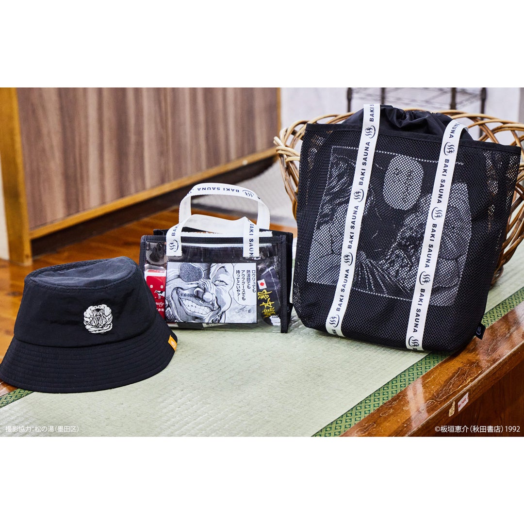 スパ内でも使用できるクリア素材のバッグ。内側には小物の仕分けに使いやすいメッシュ素材のポケット付き。ホームサウナであればこれ1つでおでかけ可能です。