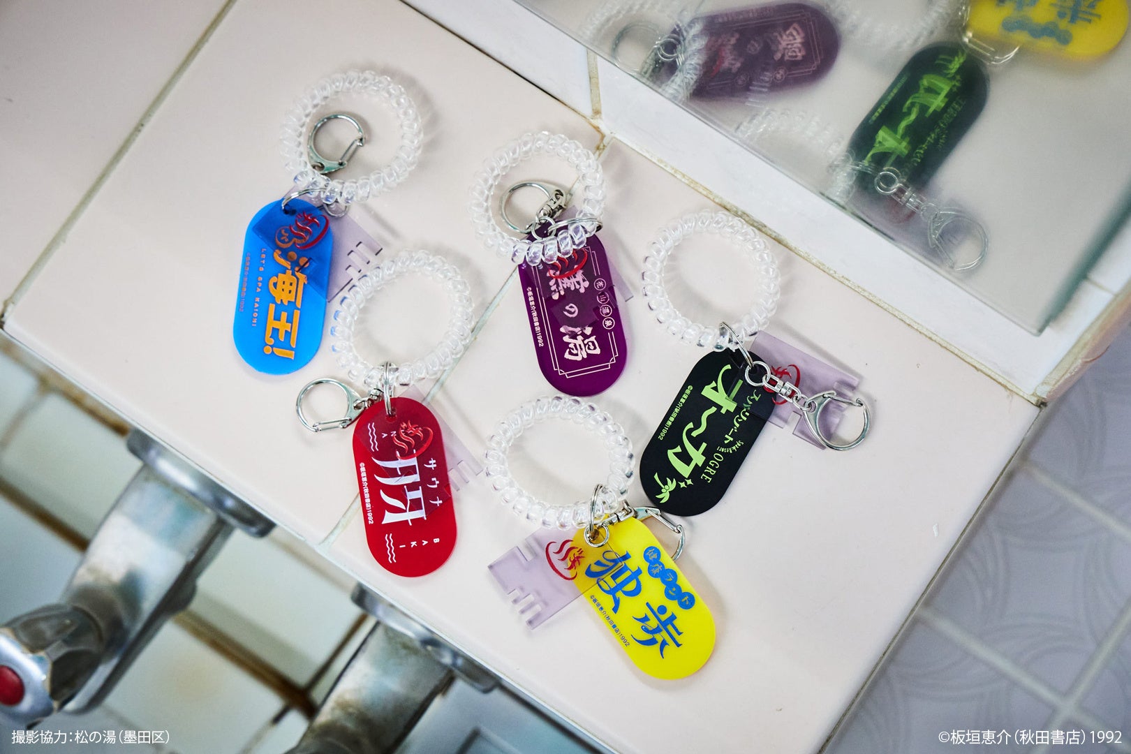 烈海王が「こ………ッッ これは………??」と思わずツッコミを入れたくなるような、各キャラクターをイメージした温浴施設名をあしらったアクリルキーホルダー。キーホルダーとしてはもちろん、ブレスレットやアンクレットとしても着用できます。