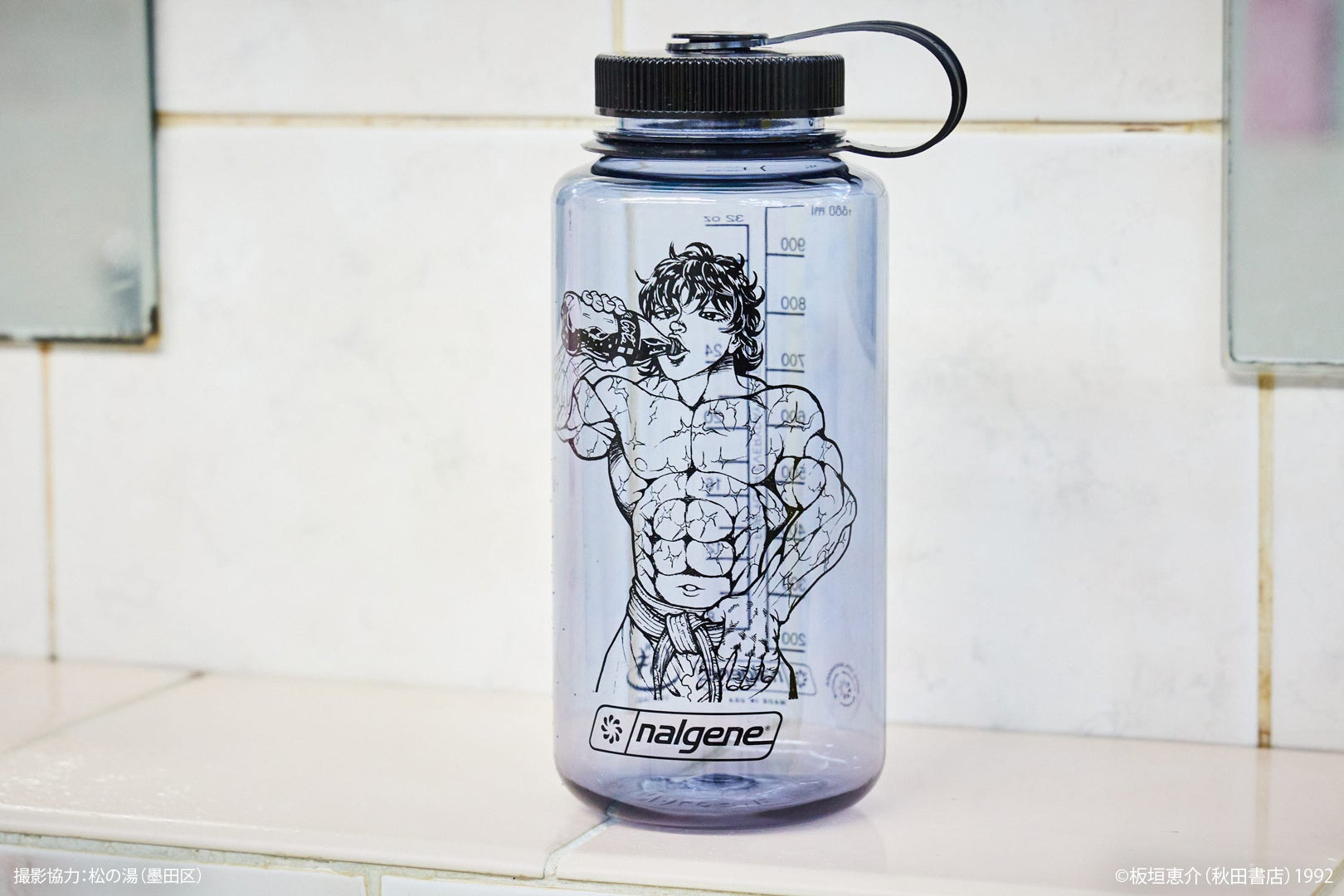 刃牙のあの有名なシーンをプリントした、水分補給に最適な「ナルゲンボトル」とのコラボ商品です。