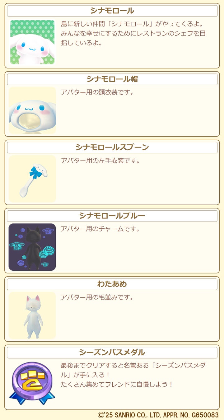 イベントに参加して新しい仲間「シナモロール」を島にお迎えしよう!