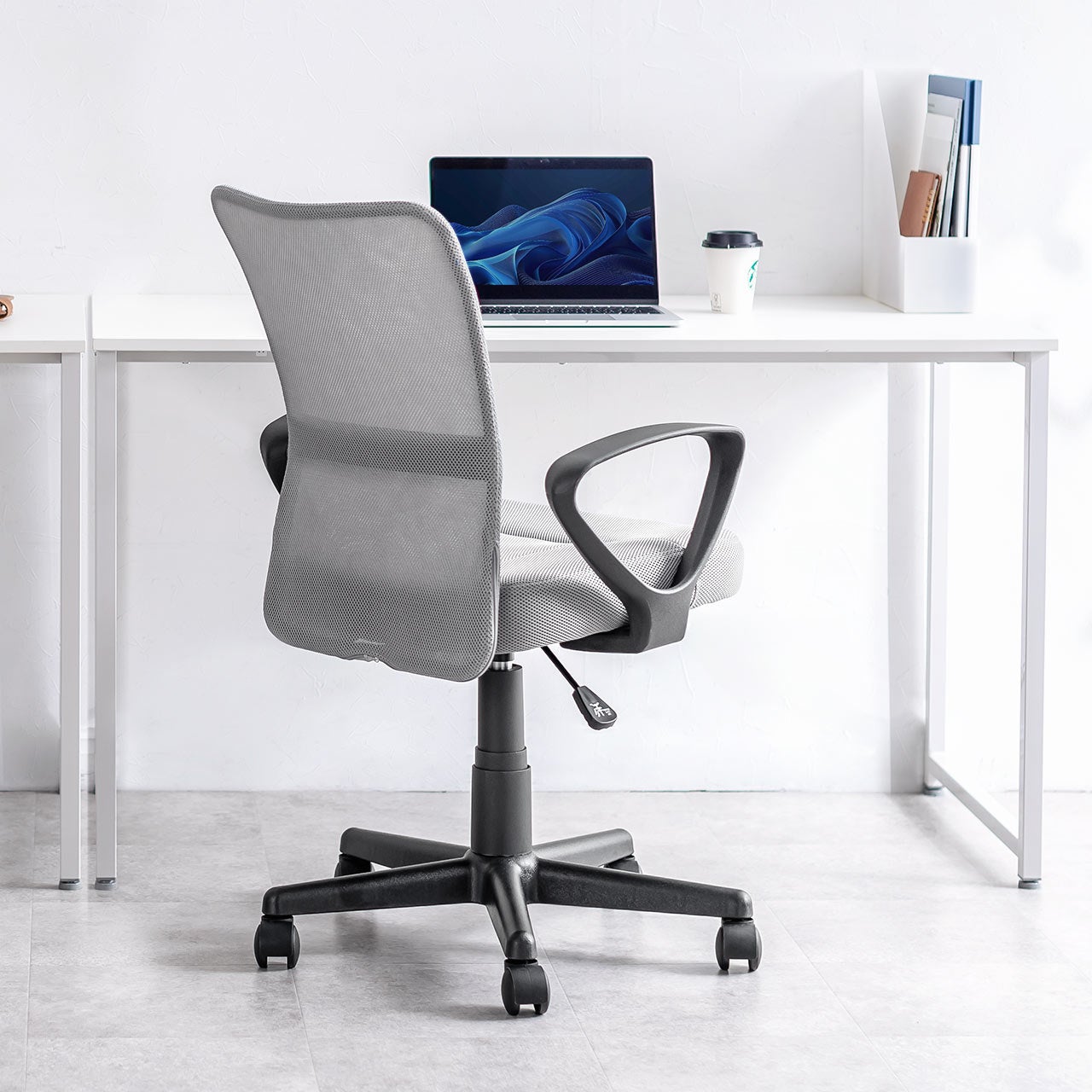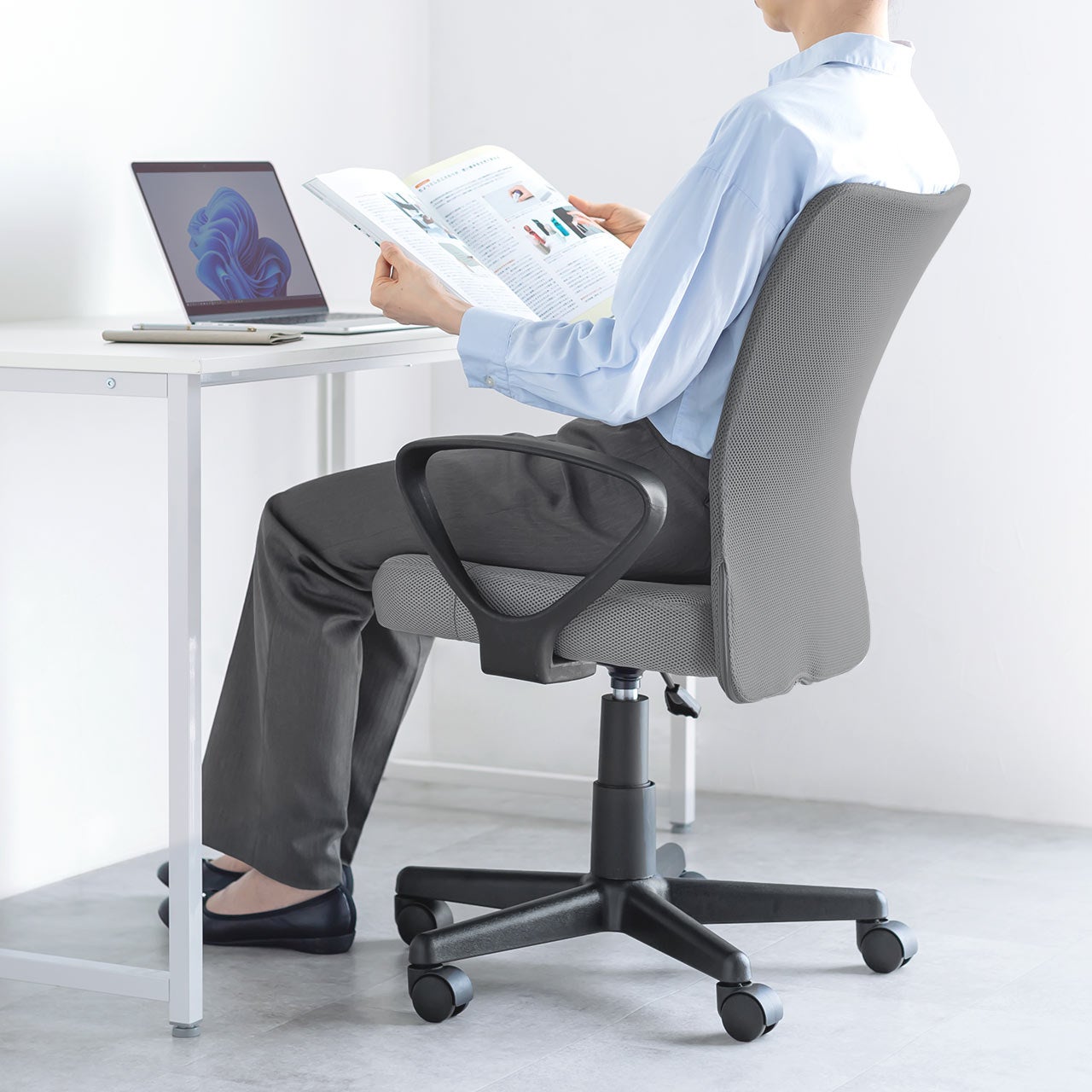 オフィスチェア 事務椅子 アームレスト付き コンパクト ランバーサポート ミドルバック キャスター付き