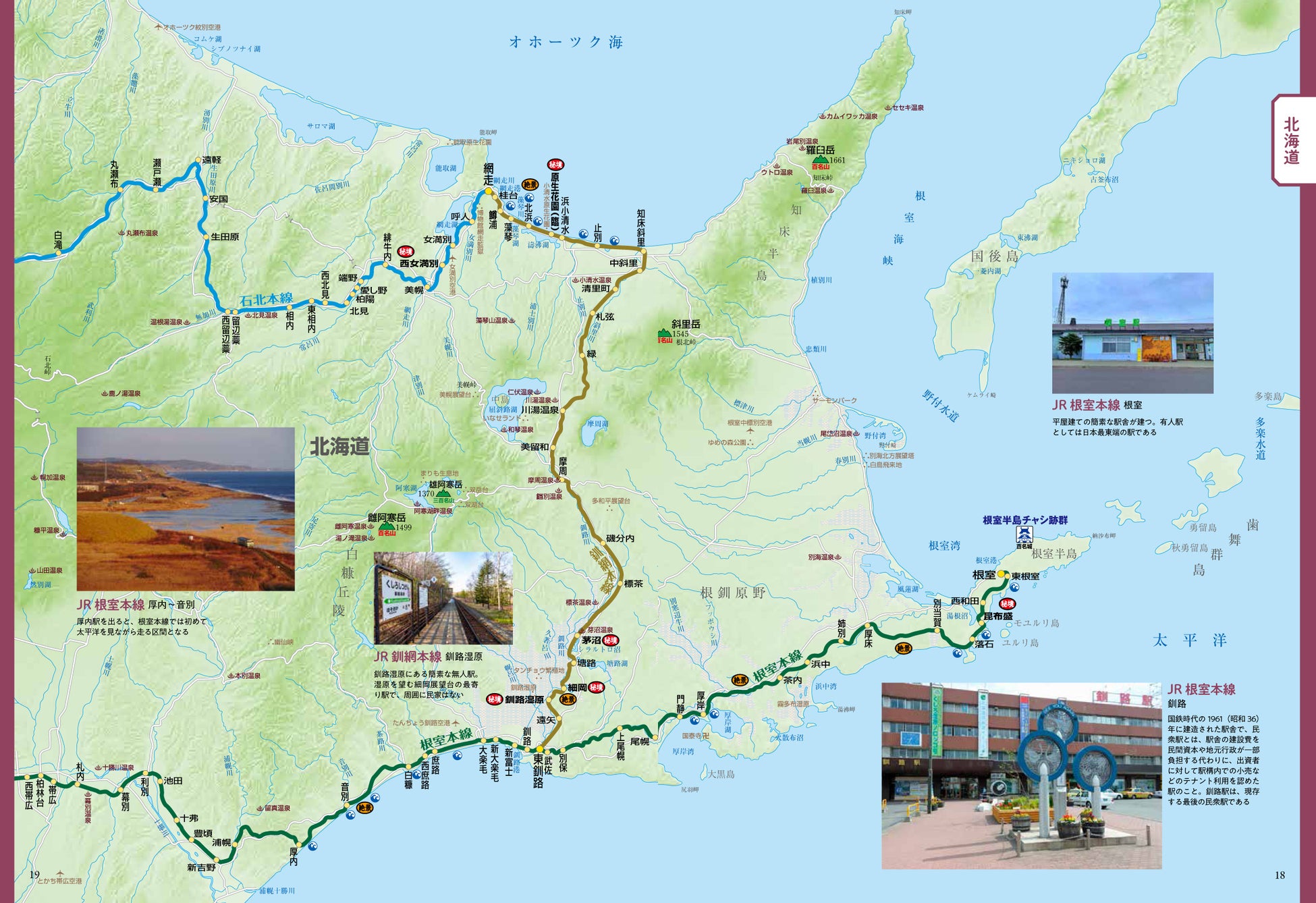 全国のJR路線が強調された見やすい鉄道地図と、路線記事を掲載