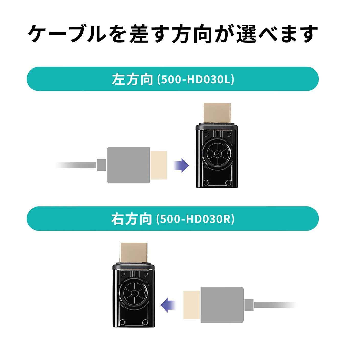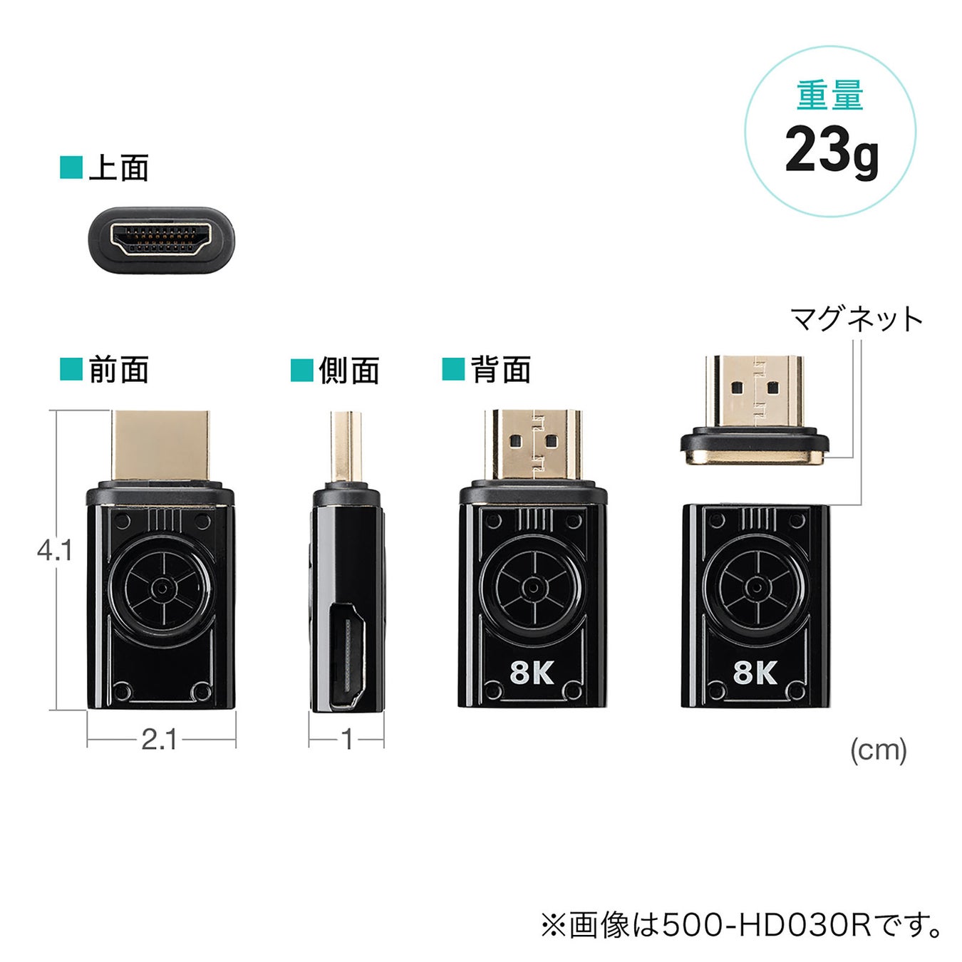 HDMIアダプタ マグネット L型 右/左向き 横 L字 8K/60Hz 4K/120Hz 配線簡単 ドライバ不要 通電LED テレビ プロジェクター ゲーム 変換アダプタ コネクタ ブラック