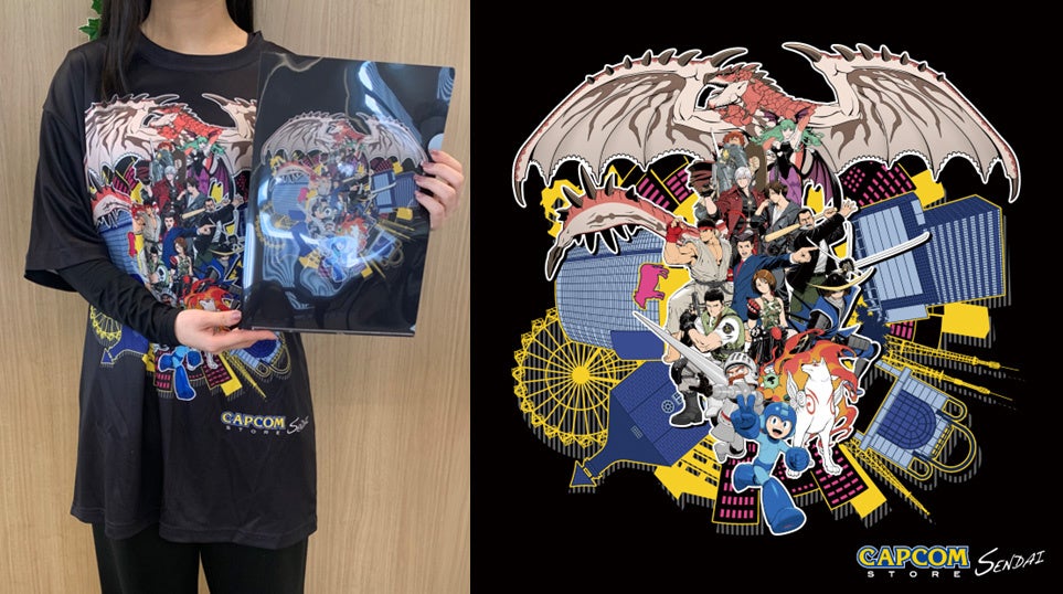 カプコンストア各店舗にて限定販売しているメインビジュアル商品に、新たに仙台店が仲間入りしました! 新店オープン記念として、「フルカラーTシャツ」「クリアファイル」「ポストカード」の3点をご用意しております。