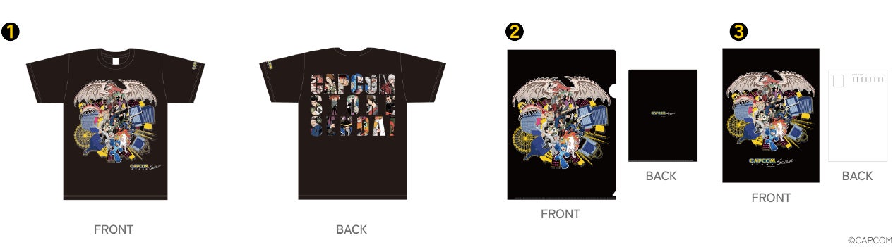 ①「CAPCOM STORE SENDAI メインビジュアルTシャツ(L、XL)」 各種5,500円