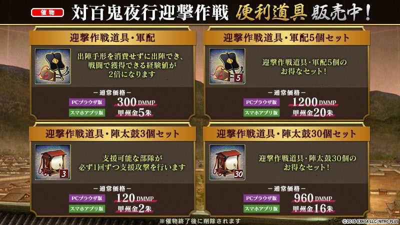 ■「対百鬼夜行迎撃作戦」専用便利道具を期間限定で販売中!