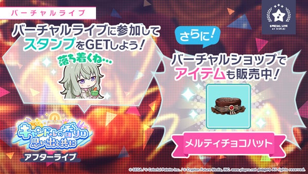 また、「キャンドルの香りは思い出と共に アフターライブ」の開催に先立ち、1月31日(火)からバーチャルショップにて、アクセサリ「メルティチョコハット」を販売中です。