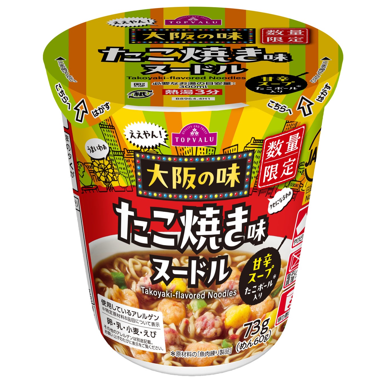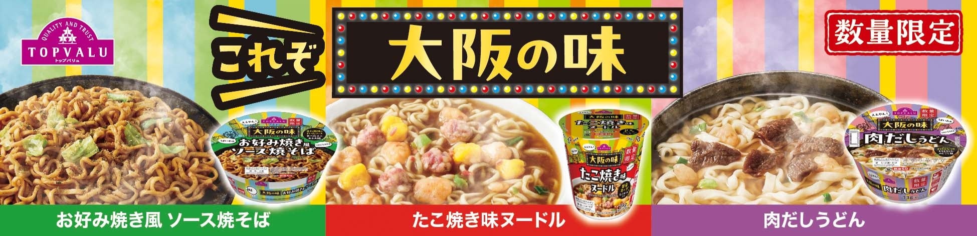 イオンは4月1日(火)※1、「イオン」「イオンスタイル」「マックスバリュ」など全国約3,100店舗にて、人気の大阪グルメを手軽に楽しんでいただけるカップ麺3品目を数量限定で発売します。