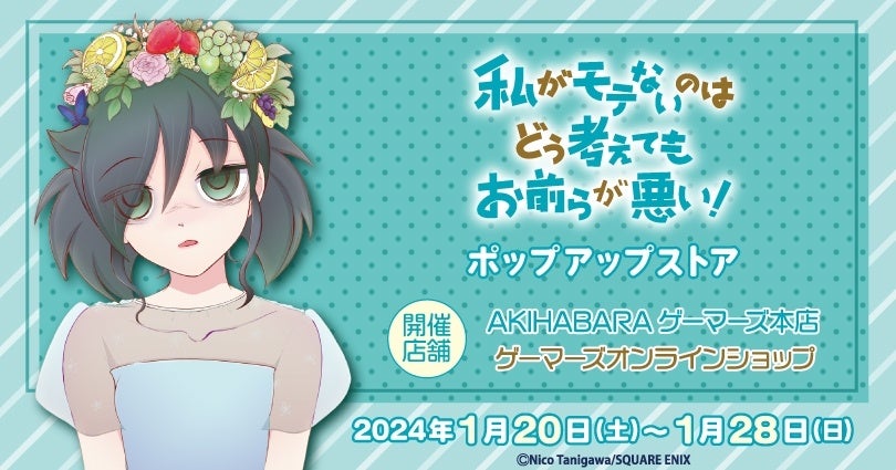 株式会社カードラボ ゲーマーズ(本社:東京都豊島区、https://www.gamers.co.jp/以下ゲーマーズ )は、2024年1月20日(土)より『私がモテないのはどう考えてもお前らが悪い!』ポップアップストア を開催することをお知らせいたします。