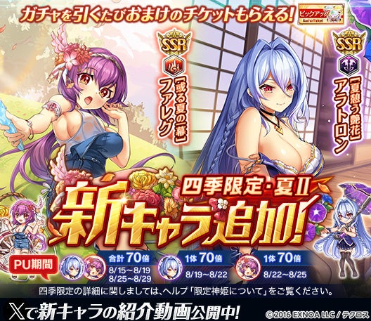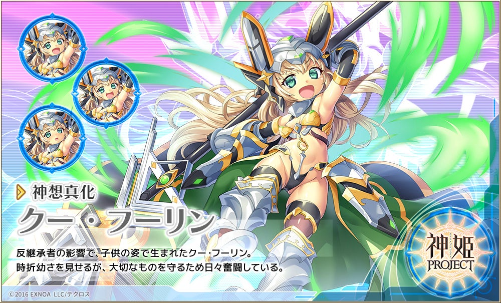 合同会社EXNOA(本社:東京都港区、CEO:村中 悠介、URL:https://games.dmm.com/ )が運営するDMM GAMESにおいて『神姫PROJECT』は、「アラトロン」「ファレグ」が新衣装で登場する事を発表した。さらにクー・フーリンが新たな姿に神想真化して追加された。