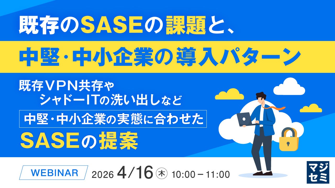 マジセミ株式会社は「既存のSASEの課題と、中堅・中小企業の導入パターン」というテーマのウェビナーを開催します。