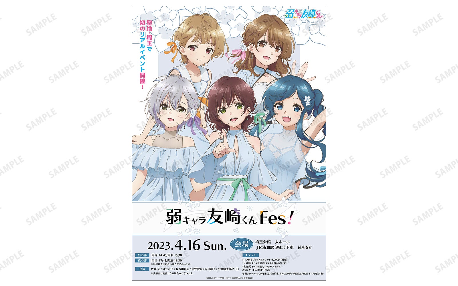 4月16日(日)に埼玉会館にて開催の「弱キャラ友崎くんFes!」にて出店が決定いたしました。『弱キャラ友崎くん』より描き下ろしイラストを使用した新規グッズを数量限定で多数先行販売を予定しております。