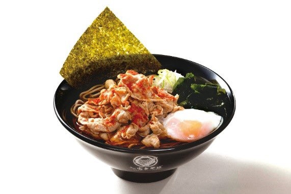富士そばの定番人気メニュー「肉富士そば」のお肉に辛味スパイスの味噌ラージャンと一味唐辛子を混ぜ合わせた旨辛メニューです。