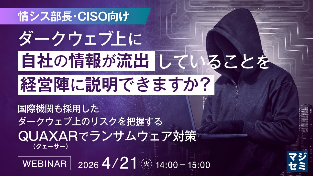マジセミ株式会社は「【情シス部長・CISO向け】ダークウェブ上に自社の情報が流出していることを経営陣に説明できますか?」というテーマのウェビナーを開催します。