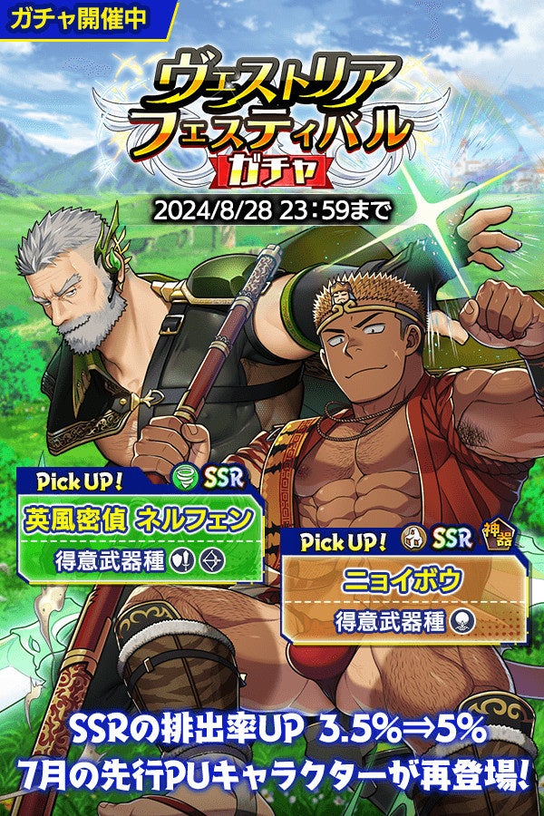 ■「ヴェストリアフェスティバルガチャ」&「極致絆成武闘宴応援未所持SSR確定ステップアップガチャ」登場!