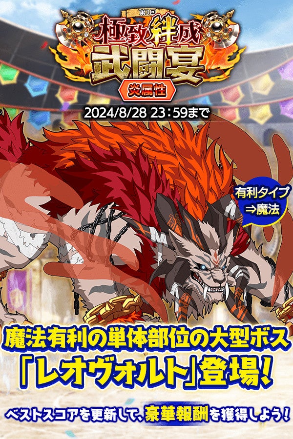 ※極致絆成武闘宴百幻獣王武器ガチャは8月22日(木)メンテナンス終了後~9月4日(水)23:59まで