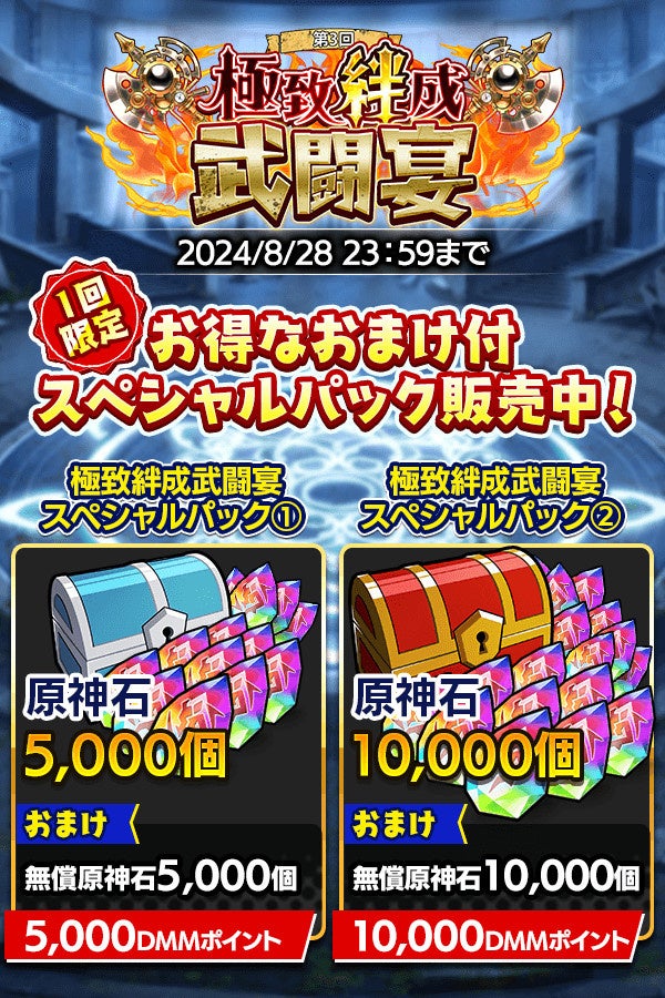 イベント期間中、原神石がおトクに購入できる「第3回極致絆成武闘宴スペシャルパック」が2種登場!