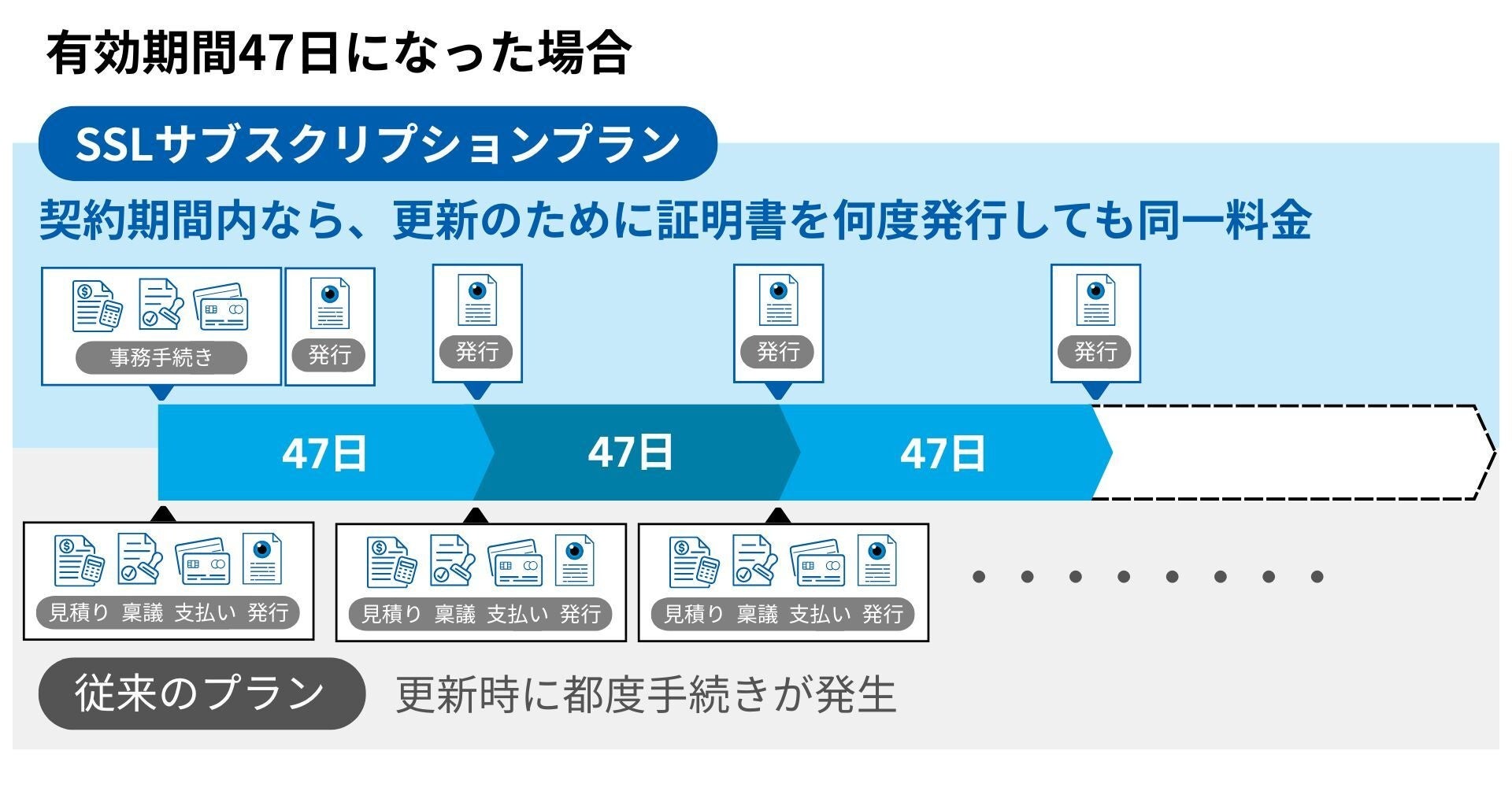 証明書発行が無制限、購入手続きは最大3年に一度で完結