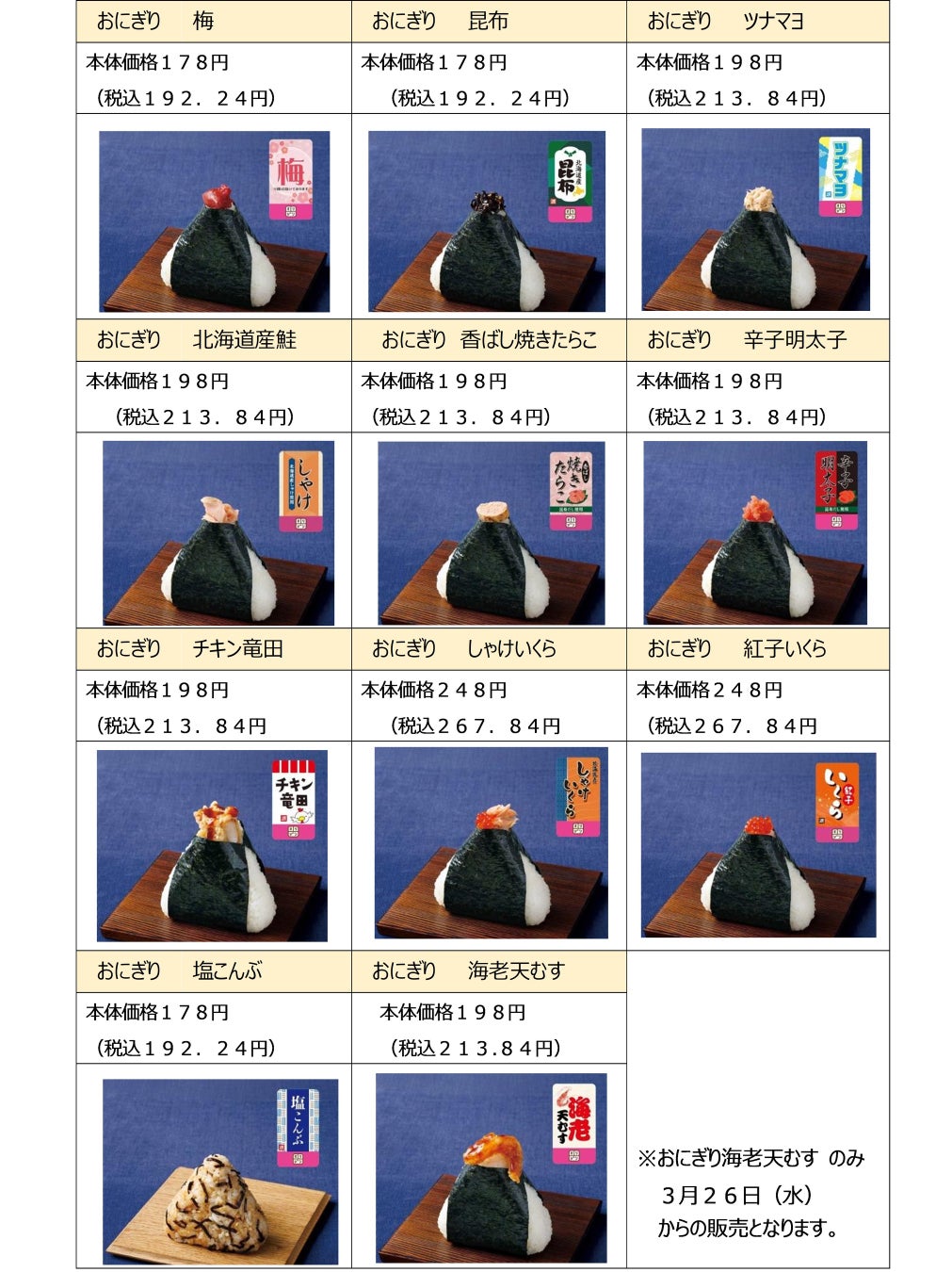 ※おにぎり海老天むすのみ3月26日(水)からの販売です。