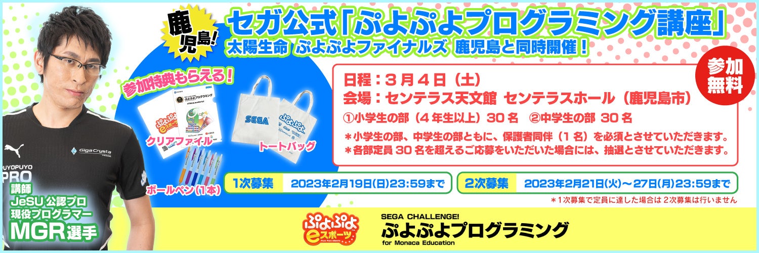 プロ選手から本物を学ぼう!3月4日(土)セガ公式「ぷよぷよプログラミング講座」を鹿児島で開催!