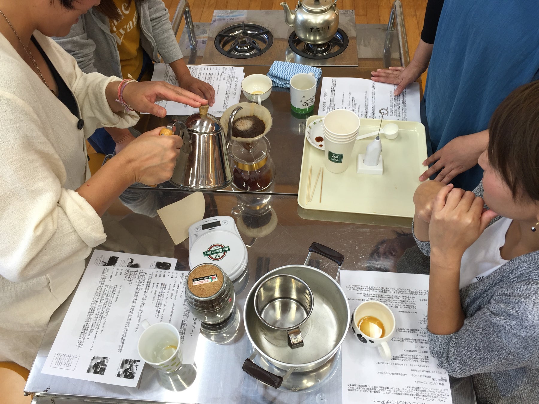 3 実践(グループに分かれてコーヒーを淹れ、参加者は各グループのコーヒーを飲み比べ)
