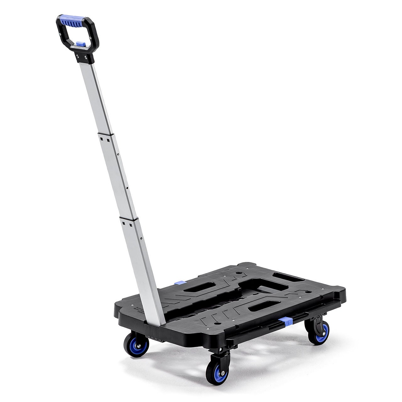 ハンドル付き台車 折りたたみ 耐荷重137kg 連結可能 スタッキング キャスター格納 取っ手 持ち手 車載 軽量 薄型 コンパクト ブラック