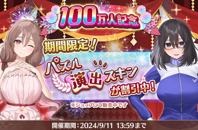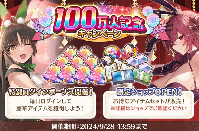 100万人突破記念のログインボーナスの開始と特別セットを販売いたします。
