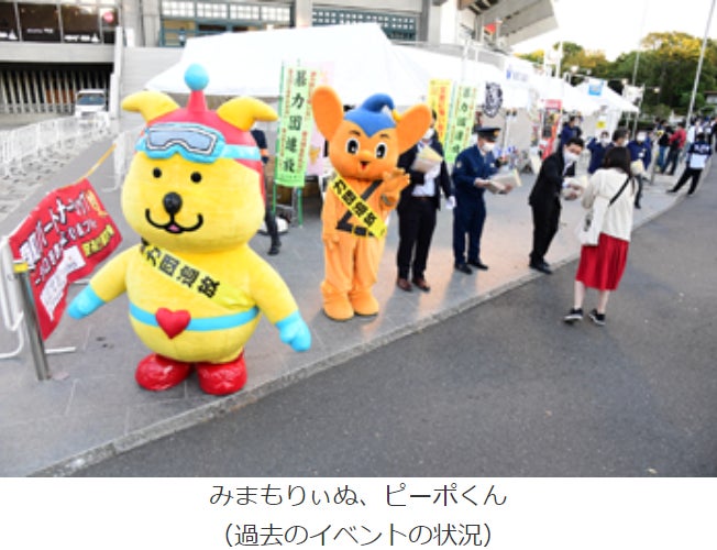 みまもりぃぬ、ピーポくん(警視庁シンボルマスコッ)が随時、出展ブースに登場し、啓発品、チラシ、イベント当日限定グッズ等を配布するとともに、暴力団排除と併せて、 匿名・ 流動型犯罪グループによる犯罪に巻き込まれないよう、注意を呼びかけます。