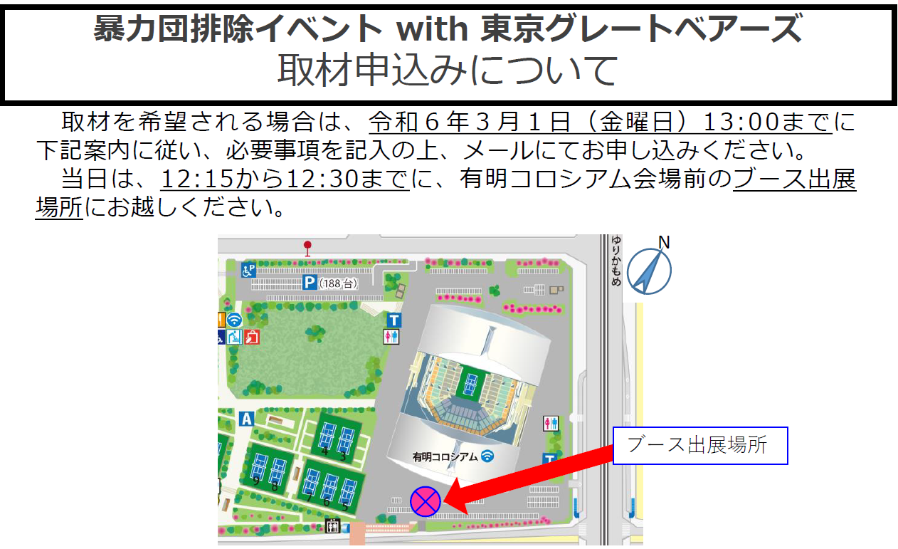暴力団排除イベント with 東京グレートベアーズ取材申込み