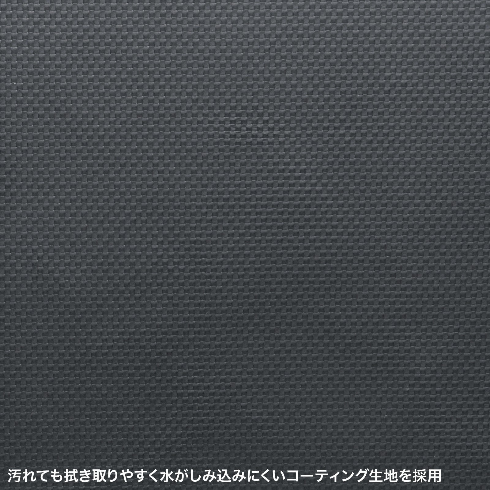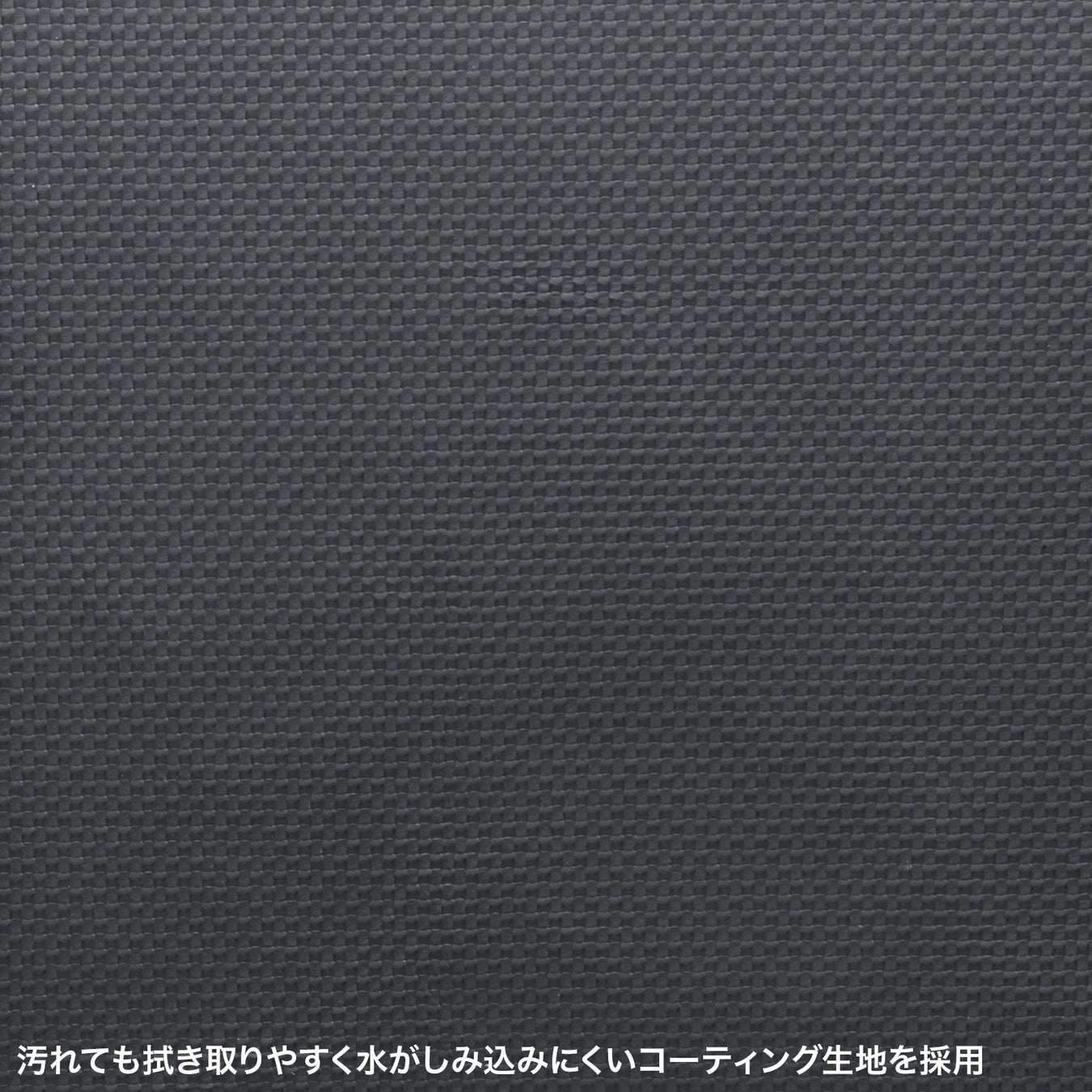 コーティング生地を使用しているため、水がしみ込みにくく、汚れも簡単に拭き取れます。また、水の侵入を防ぐ止水ファスナーを採用しており、大切な荷物をしっかり守ります。