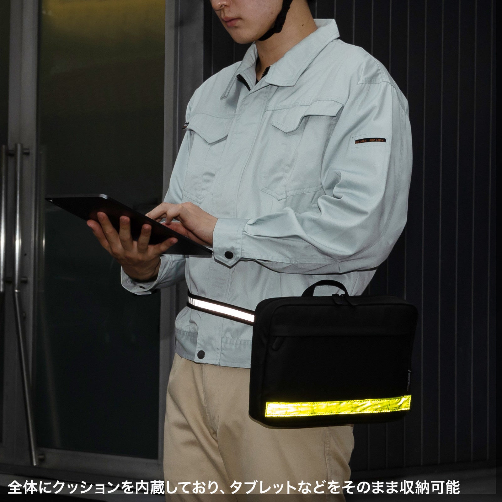 全体にクッションを内蔵しており、タブレットやデバイスをそのまま安全に収納できます。優れた衝撃吸収性により、大切な機器を外部の衝撃からしっかり守り、安心して持ち運ぶことができます。