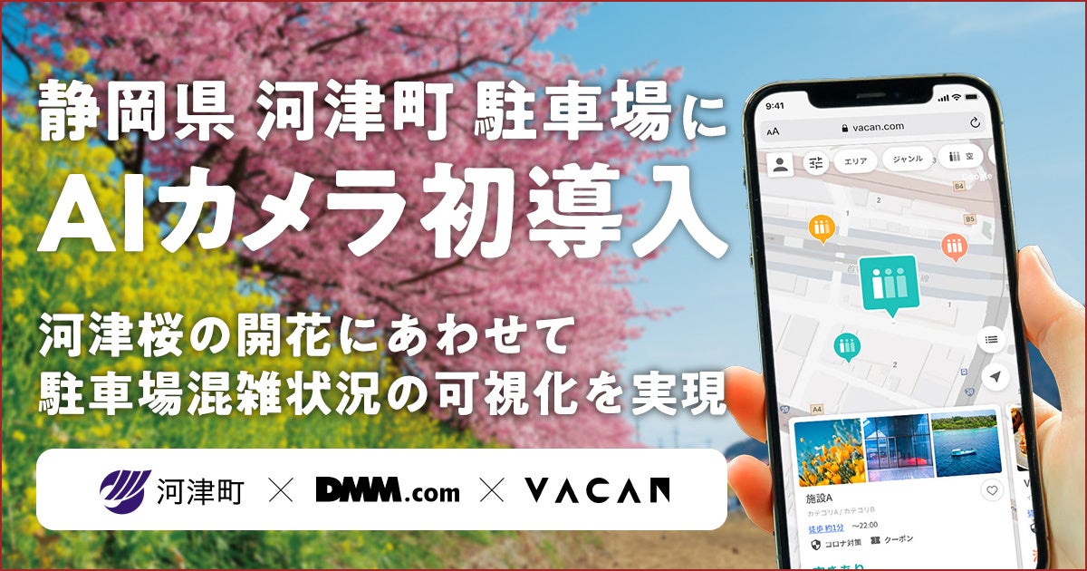 合同会社DMM.com(本社:東京都港区、イノベーションカンパニーCEO:緒方悠、以下DMM)は地方創生事業(DMM 地方創生)において、静岡県河津町(町長:大川良樹、以下「河津町」)の河津桜まつり会場に、混雑緩和を目的としたAIカメラを2026年2月7日(土)より導入することをお知らせいたします。