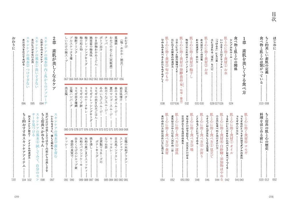 本書は、ちこ流の心と肌が整うレシピとして、内側からの「食」と、外側からの「スキンケア」をまとめた一冊です。