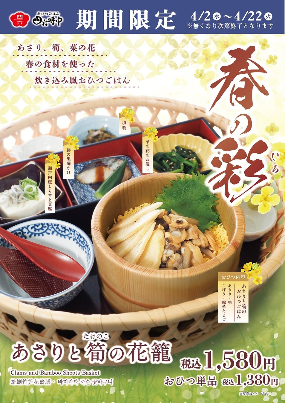 イオンイーハート『おひつごはん四六時中』で春の味覚「あさりと筍の花籠」新登場!4月2日(水)より季節限定販売スタート