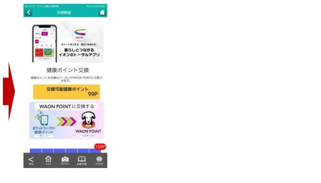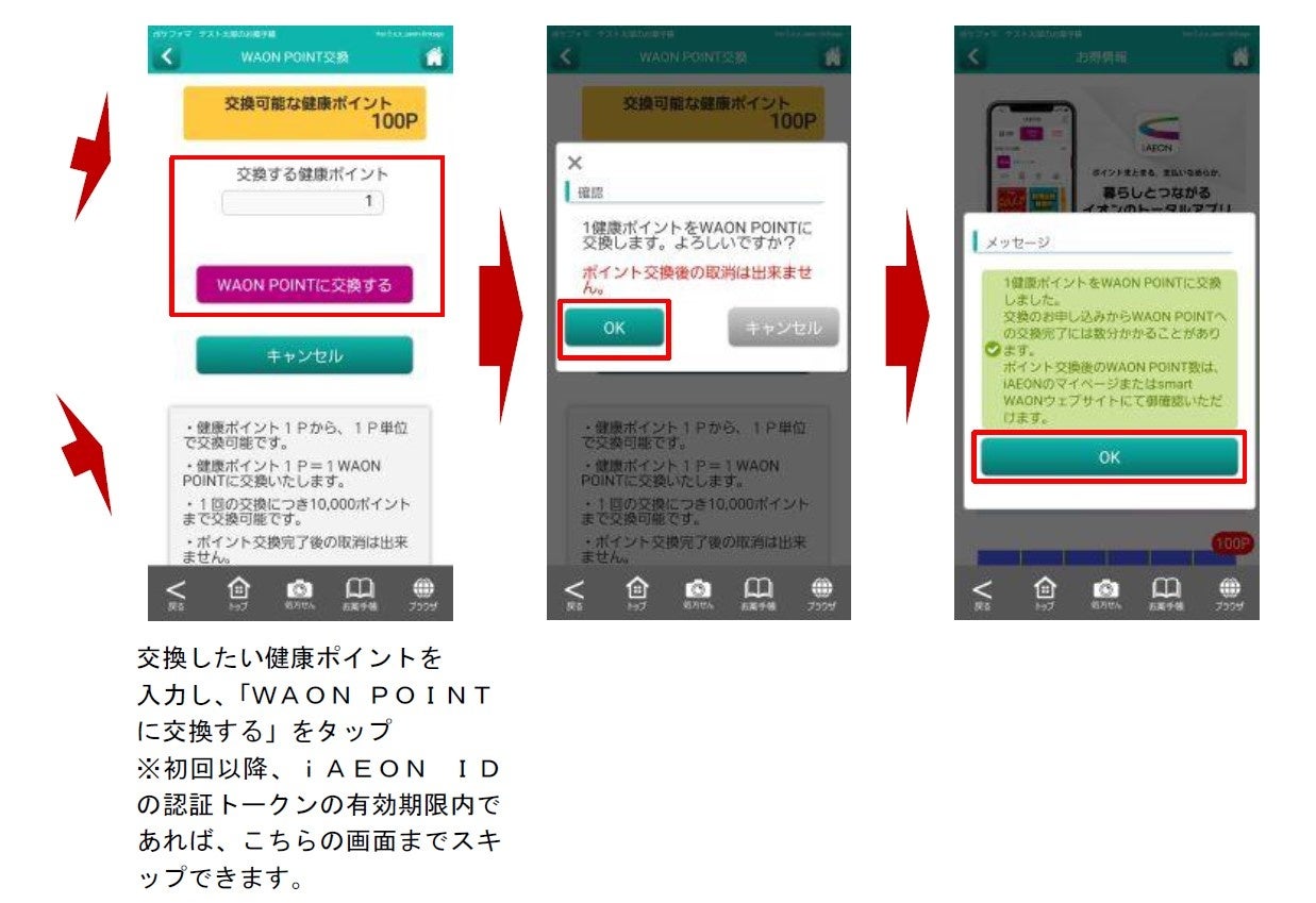 この度、“健康ポイント”をiAEON上で“WAON POINT”に交換いただけるようになります※1)。1健康ポイント=1WAON POINTから交換可能で、貯まったWAON POINTを「WAON(電子マネー)」に交換すると1ポイント=1円相当でご利用できます。健康食品や衛生用品に限らず、食品や衣料品などのお買物にもご利用可能になります。