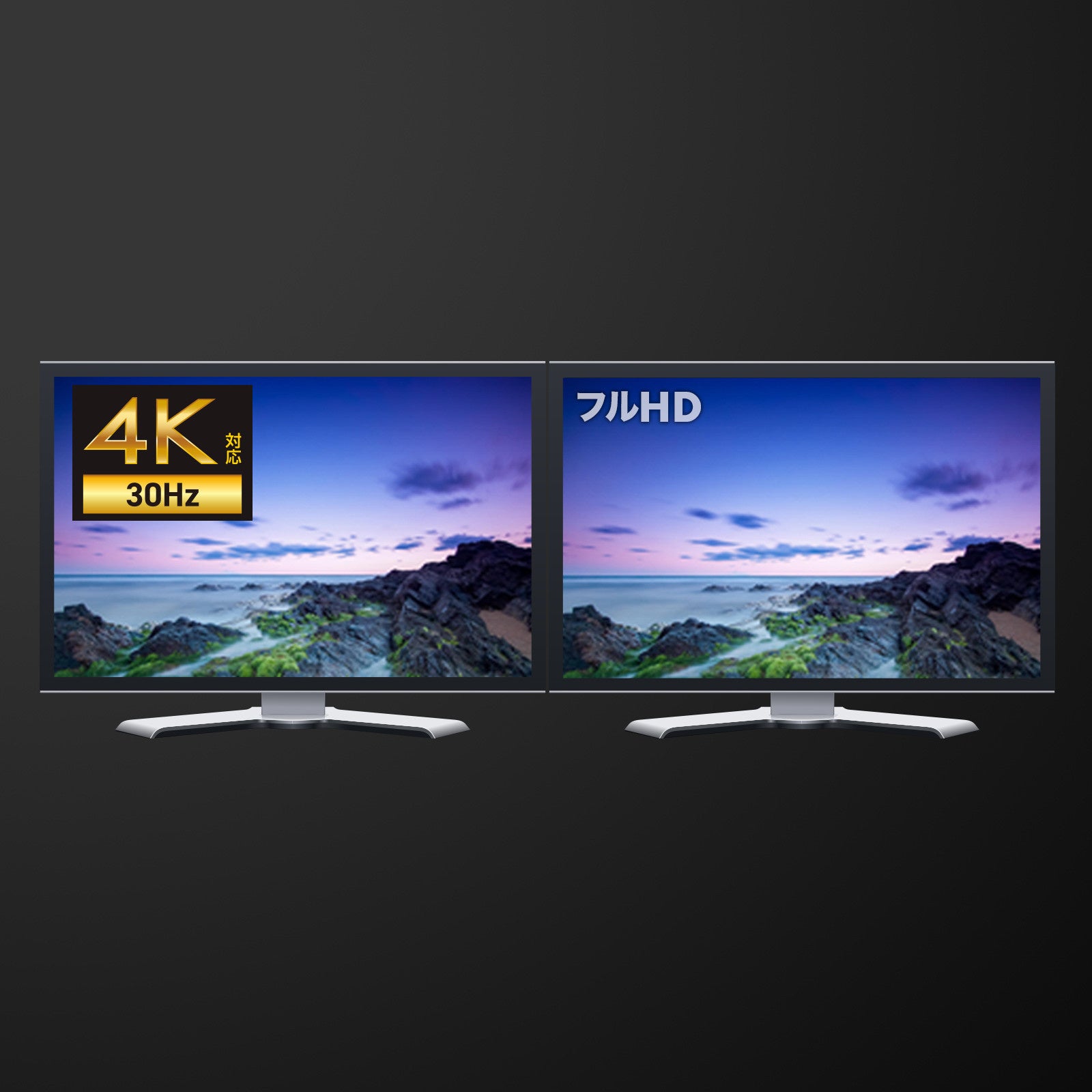 1画面出力時は最大4K解像度(3840×2160/30Hz)出力に対応しており、4K対応の大画面テレビやプロジェクターなどで高精細な4K解像度をそのまま出力できます。