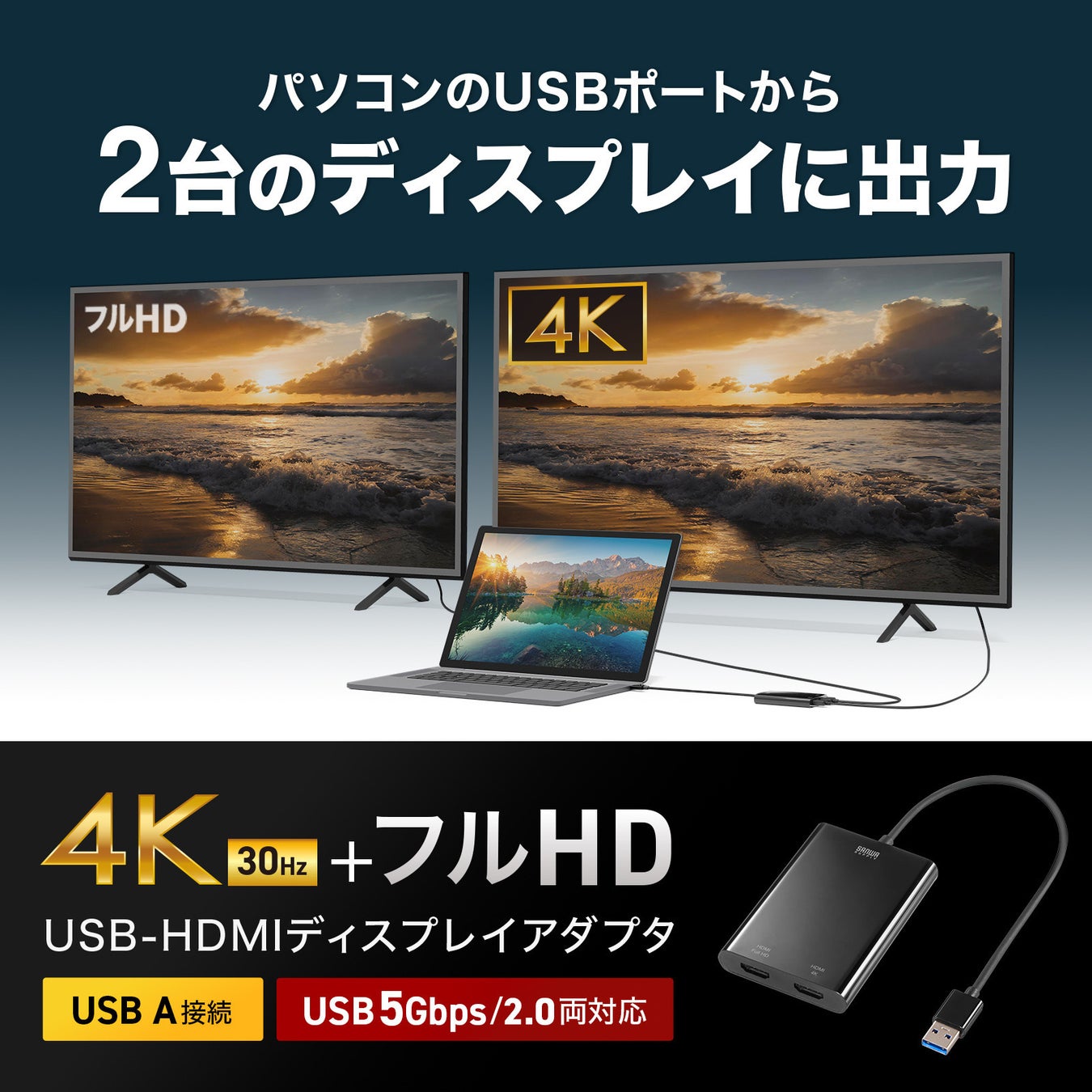 品名:USB-HDMIディスプレイアダプタ(4K対応・2画面出力)