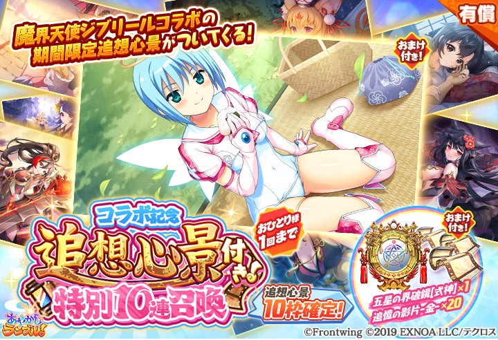 DMM GAMES『あやかしランブル!』にて、「魔界天使ジブリール」とのコラボイベントが開催!さらに魔界天使ジブリールより、期間限定「★5 リカ」「★5 アリエス」が登場!