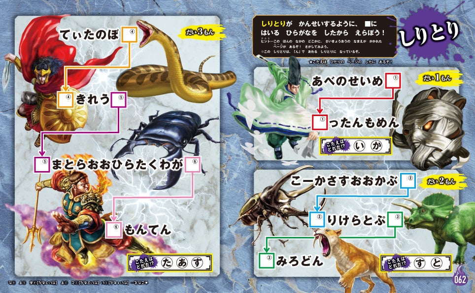 子どもたちの大好きなまちがいさがし、パズルやめいろをはじめ、最強王にちなんだクイズやしりとりなどなど……夢中になること間違いなし!