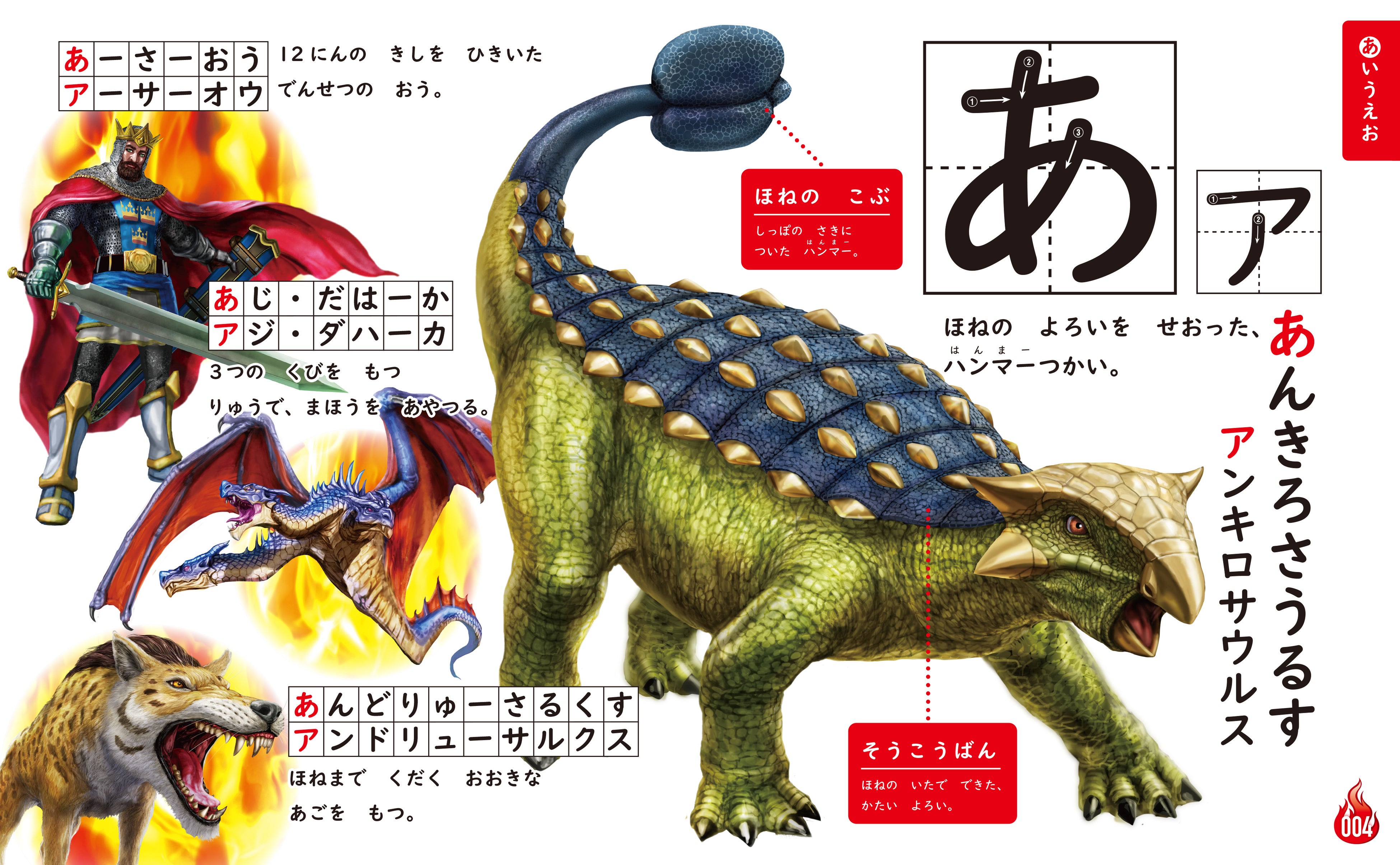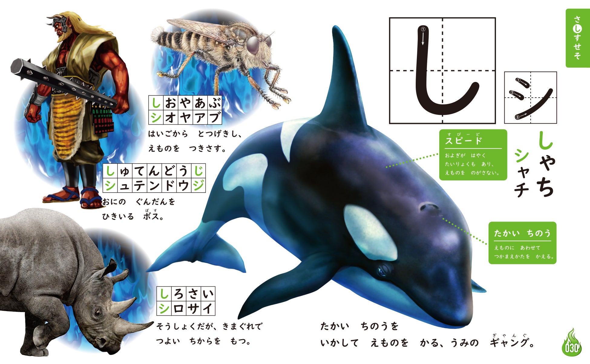この図鑑では、大好きな最強王たちの名前で、楽しんでひらがな・カタカナの読み書きを学ぶことができます。