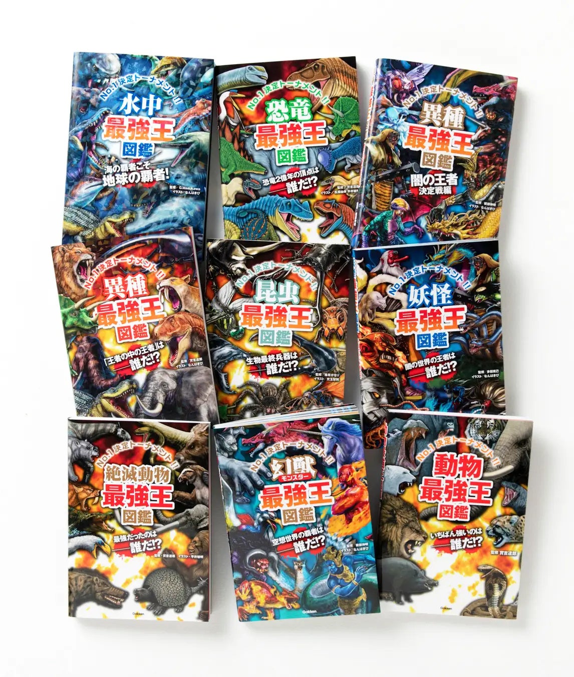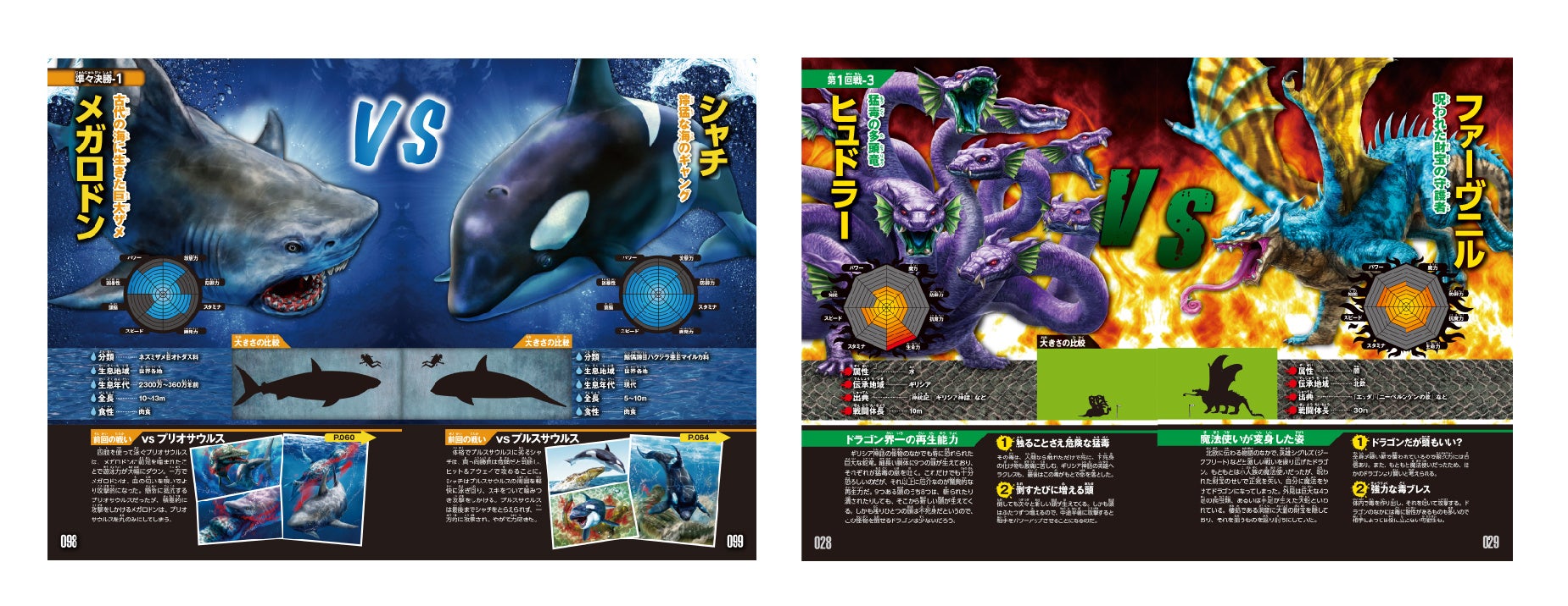 「動物界や恐竜界など、各種属の猛者たちをトーナメント方式で戦わせ、最強を決めてしまおう」というコンセプトで作られたシミュレーションバトル図鑑で、シリーズの累計は350万部を突破!