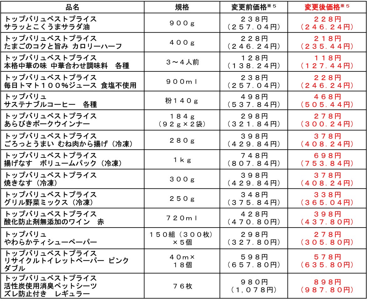 また“コツコツコスパ。”をキーワードに引き続き価格維持に努め、品質とお買い得価格の両立を目指すブランド「トップバリュベストプライス」の提案を通じて、“コスパ”の先にあるワクワクする未来を思い描いていただけるような日々の実現を目指してまいります。