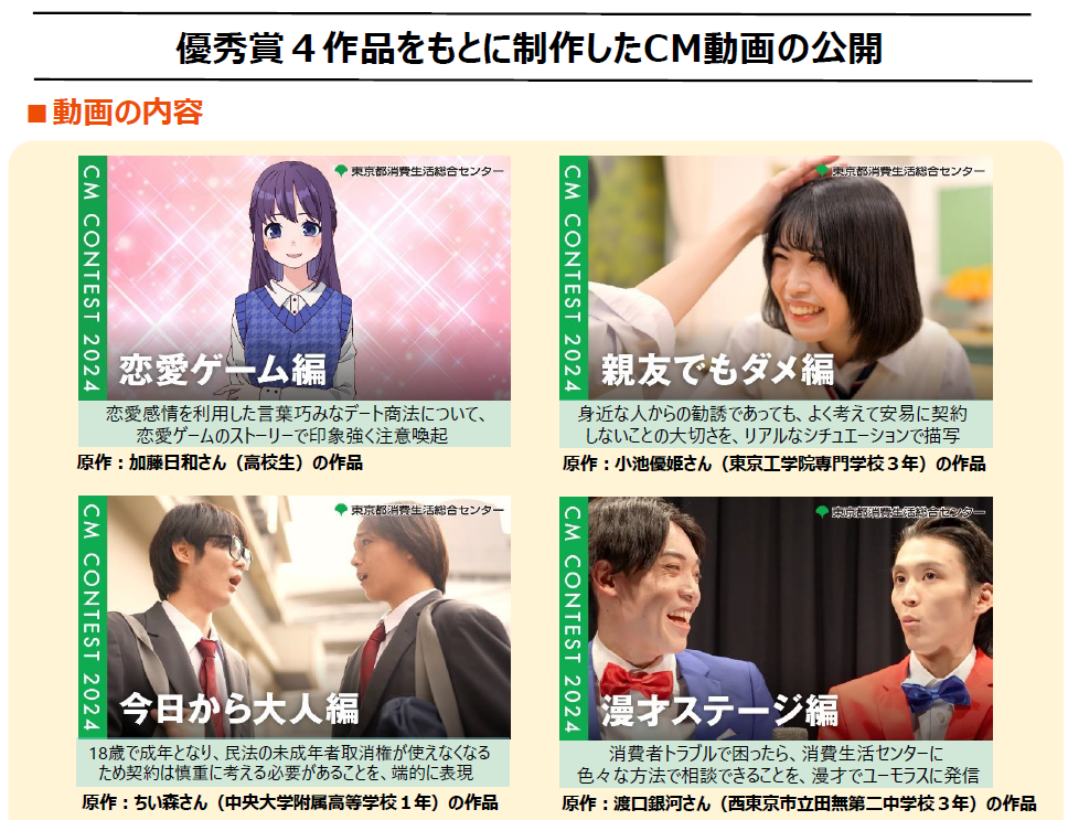 このたび、優秀賞の4作品をもとにCM動画を制作し、プロモーションを展開します。