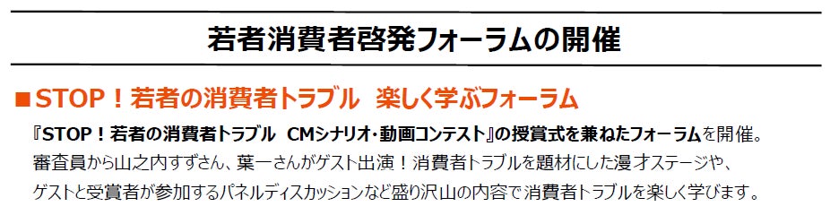また、あわせて「若者消費者啓発フォーラム」を開催しますので、ぜひご参加ください。