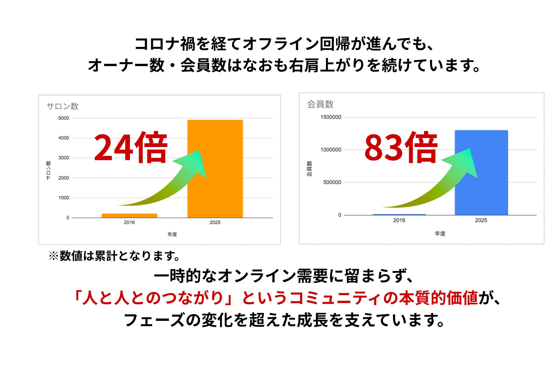 これまでプラットフォームを牽引してくださったサロンオーナー・会員の皆様への感謝を形にする記念施策に加え、より手軽に、コミュニティを体験できる新サービスの提供も予定しています。 これからも、「枠を超え、つながる、豊かな未来。」という事業ビジョンの実現に向け、皆様と共に成長し続けてまいります。
