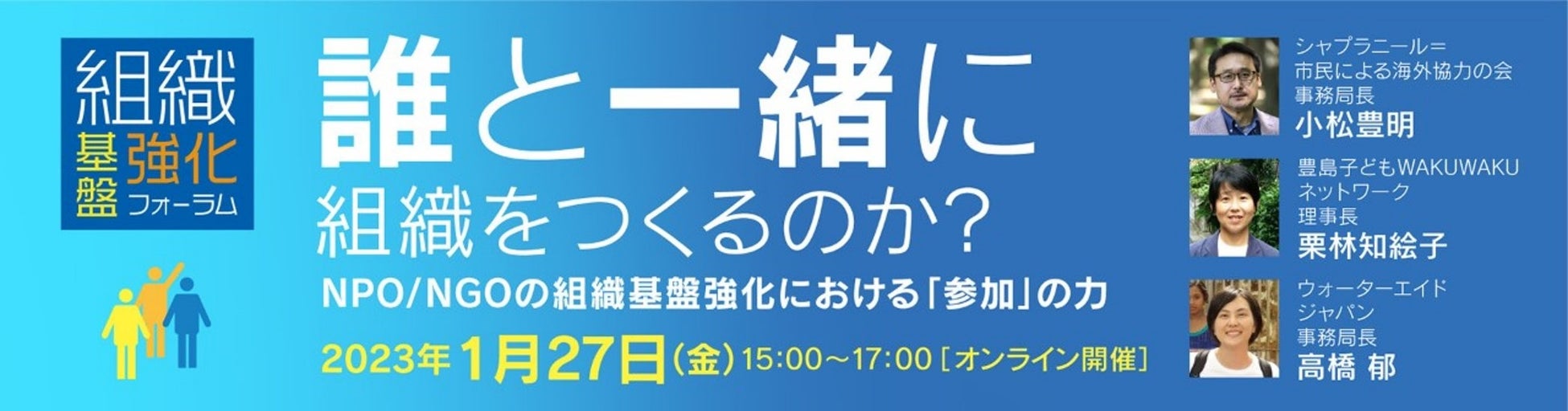 【参加者募集】NPO/NGOを対象に「組織基盤強化フォーラム」をオンラインで開催「組織基盤強化における「参加」の力~誰と一緒に組織をつくるのか?~」