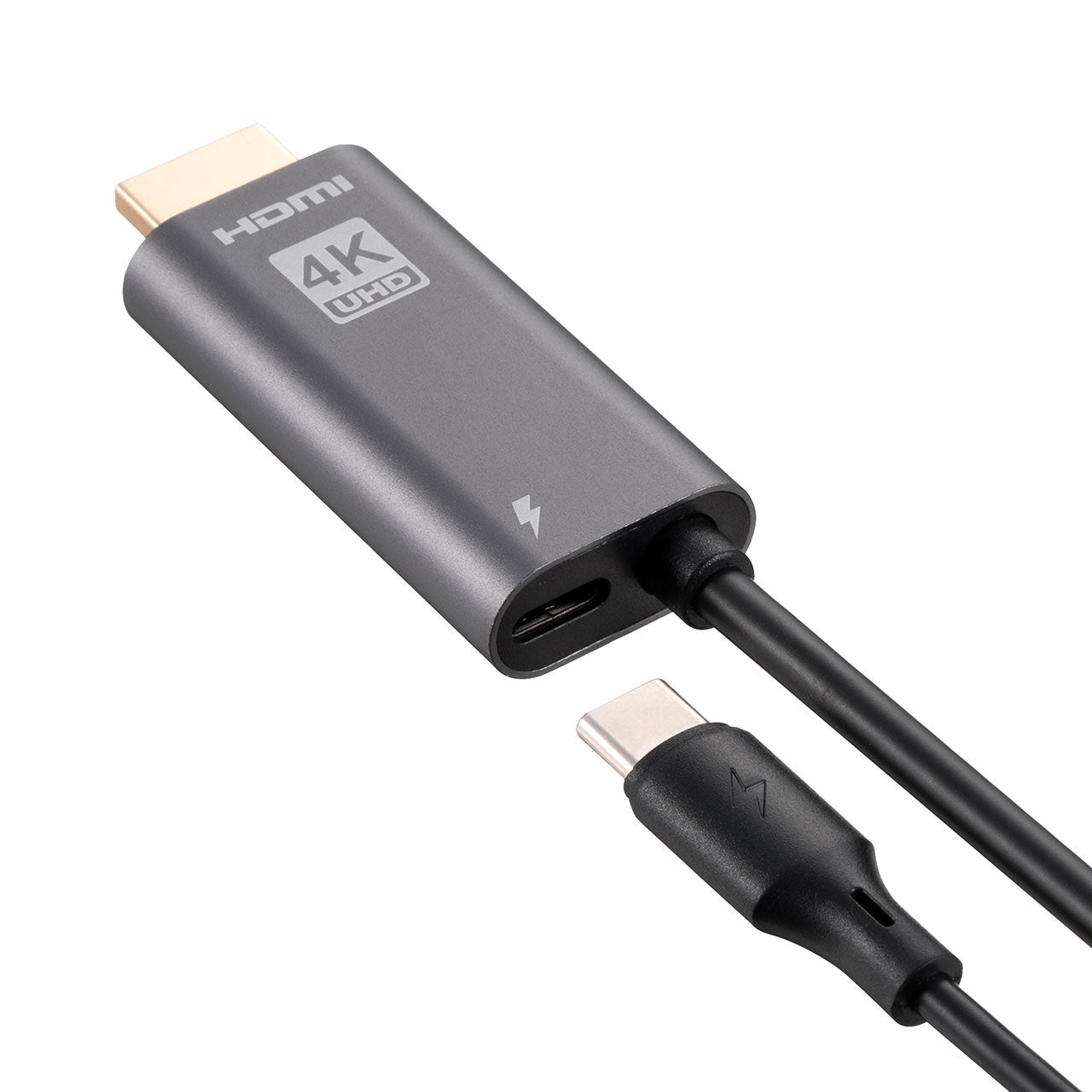 ・USB Type-C HDMI変換アダプタ 4K/30Hz フルHD/60Hz PD60W ケーブル長2m typeC機器対応 スマートフォン タブレットHDR ブラック